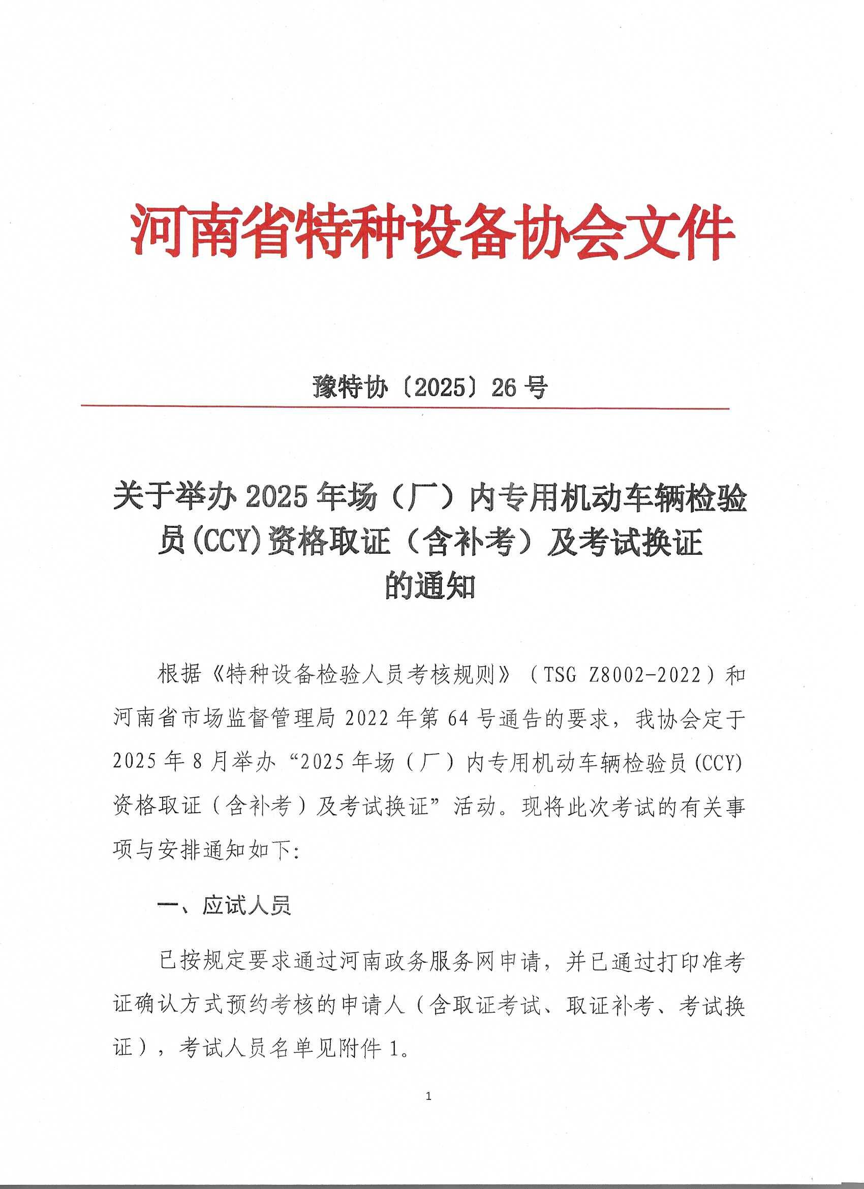 网站首页 - 通知公告-关于举办2025年场(厂)内专用机动车辆检验员(CCY)资格取证(含补考)及考试换证的通知