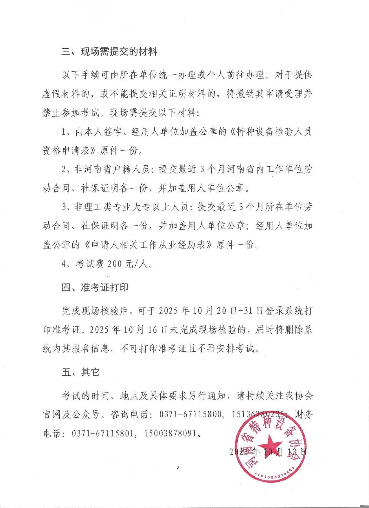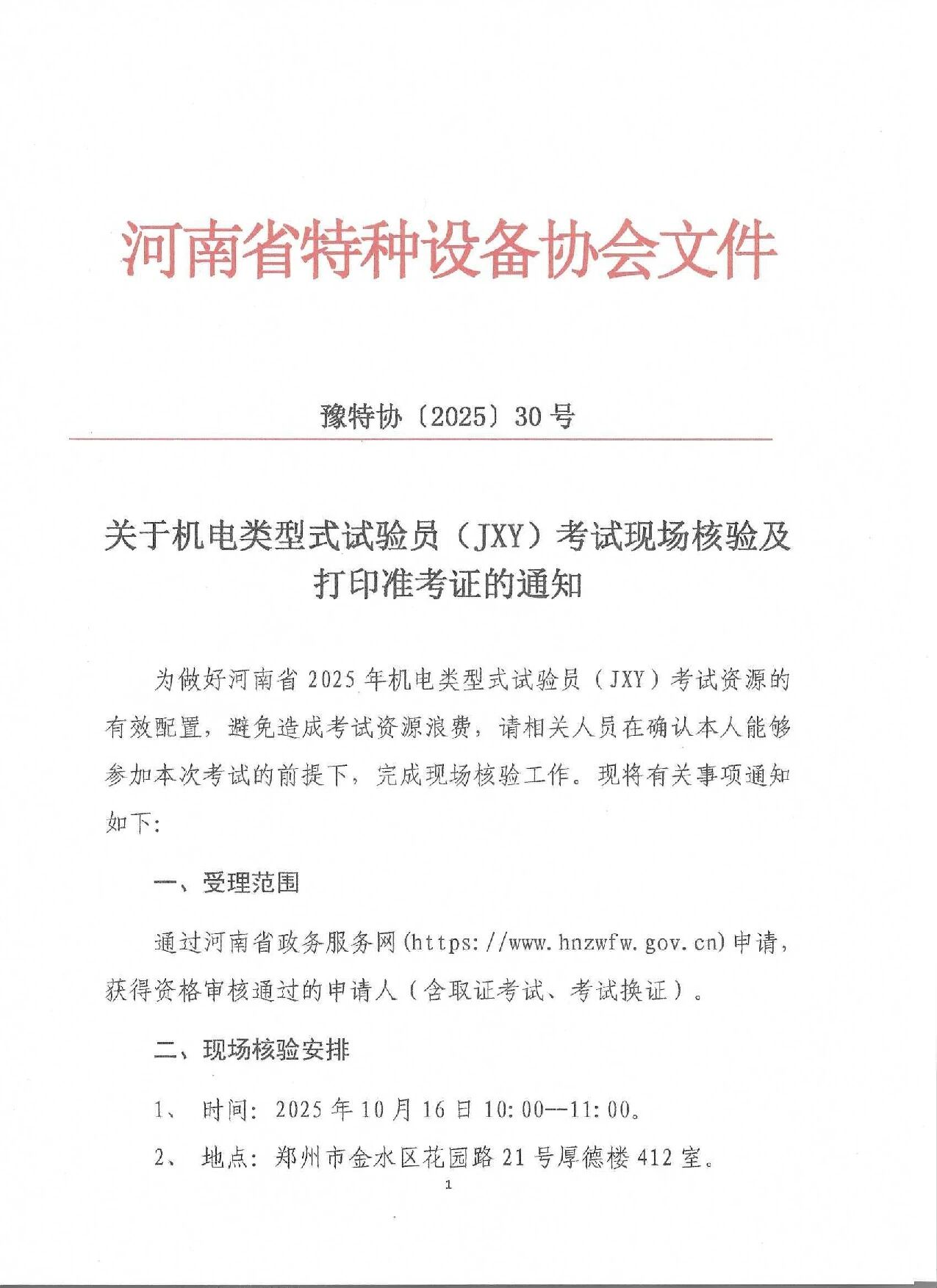关于机电类型式试验员(JXY)考试现场核验及打印准考证的通知