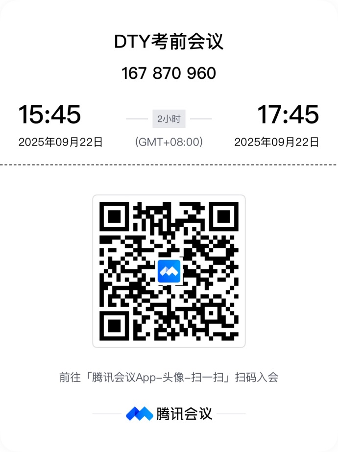 参加923-26日考试的人员务必到现场参会,如遇特殊情况不能到现场,可通过以下腾讯会议参会。