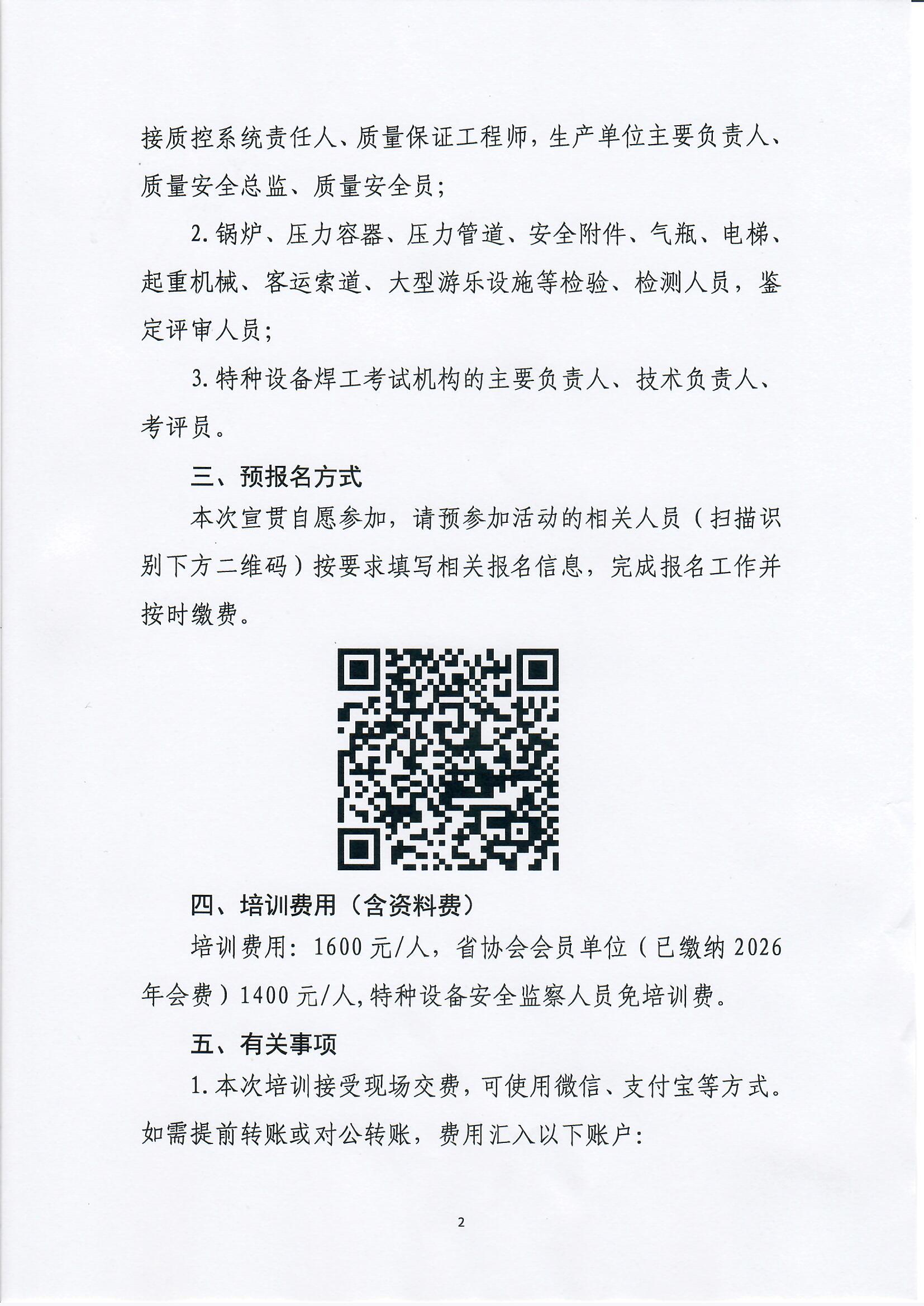 河南省特种设备协会关于举办 《特种设备焊接操作人员考核细则》 (TSG Z6002-2026)宣贯班的预通知