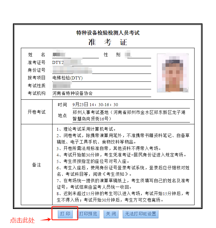 关于电梯检验员准考证打印的补充通知