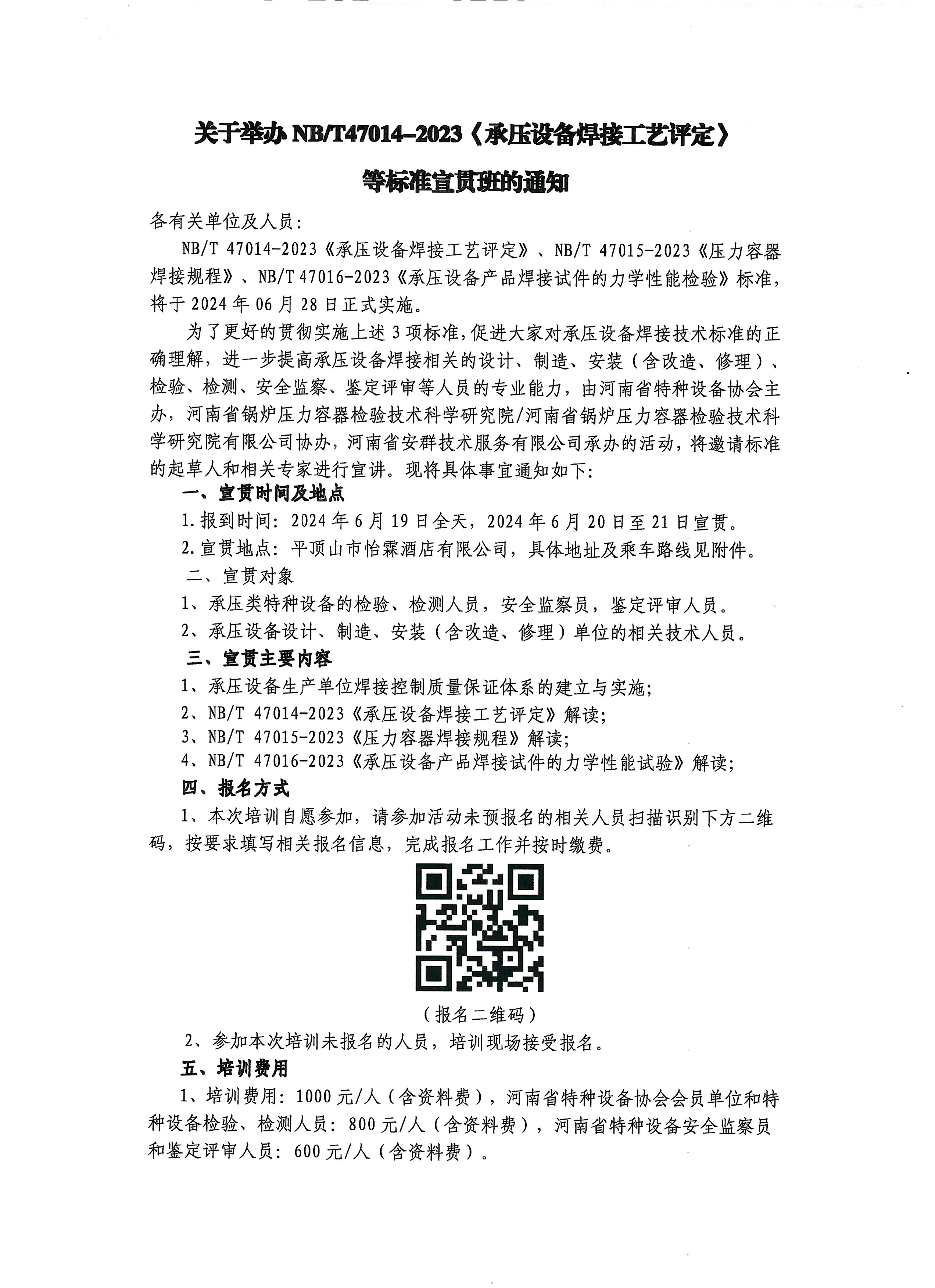 网站首页 - 通知公告-关于举办NB/T47014-2023《承压设备焊接工艺评定》 等标准宣贯班的通知