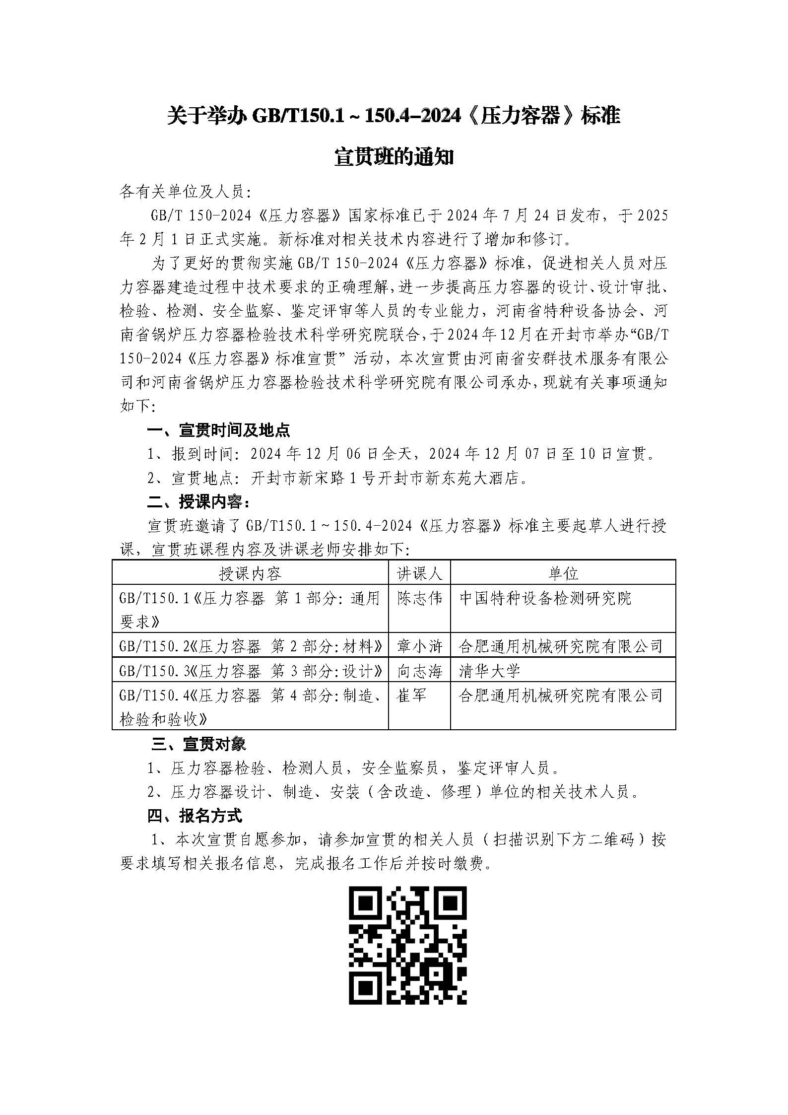 网站首页 - 通知公告-关于举办GB/T150.1~150.4-2024《压力容器》标准宣贯班的通知
